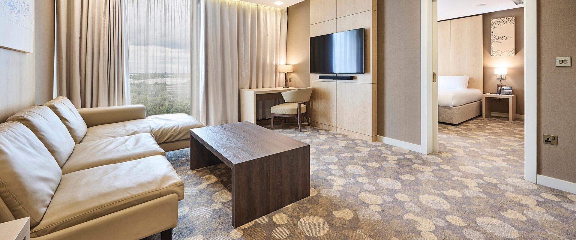 Offering a spacious area for you to call home for the night and modern interiors, no detail has been forgotten. Spend some time unwinding or catching up on emails in your own private lounge before settling down for the night in front of the TV and indulging in the fully stocked complimentary mini-bar.